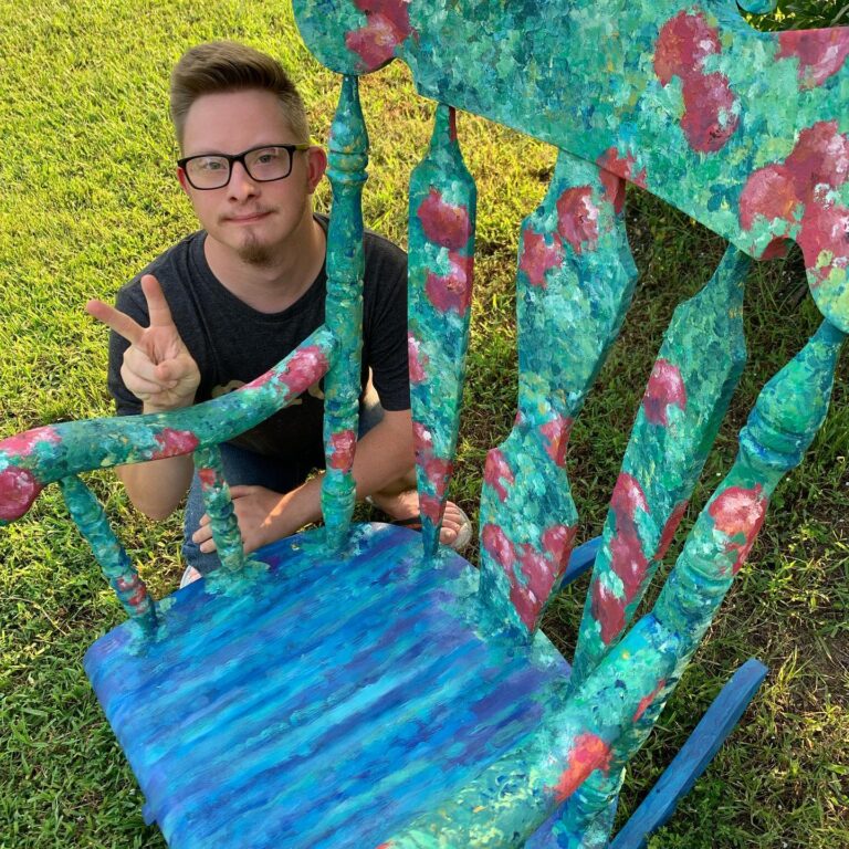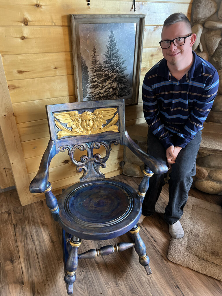 We also take commissions in person at art shows. If you meet us there, just ask about a custom chair/rocker and we’ll walk you through options.