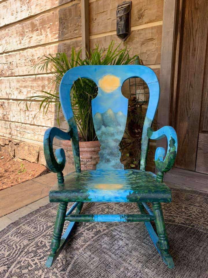 These hand-painted chairs and rockers are created by commission. Each one has been designed out from the heart, just for you.