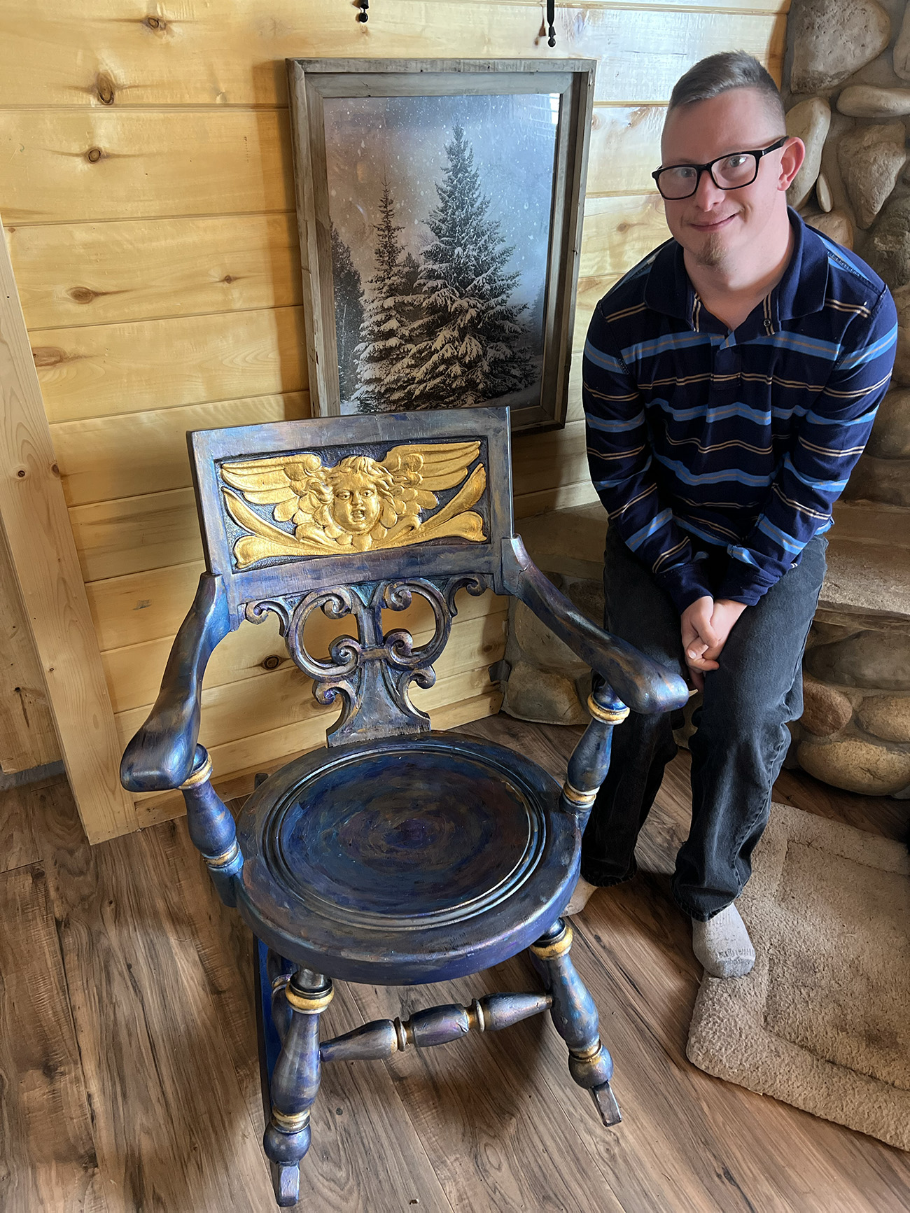 We also take commissions in person at art shows. If you meet us there, just ask about a custom chair/rocker and we’ll walk you through options.