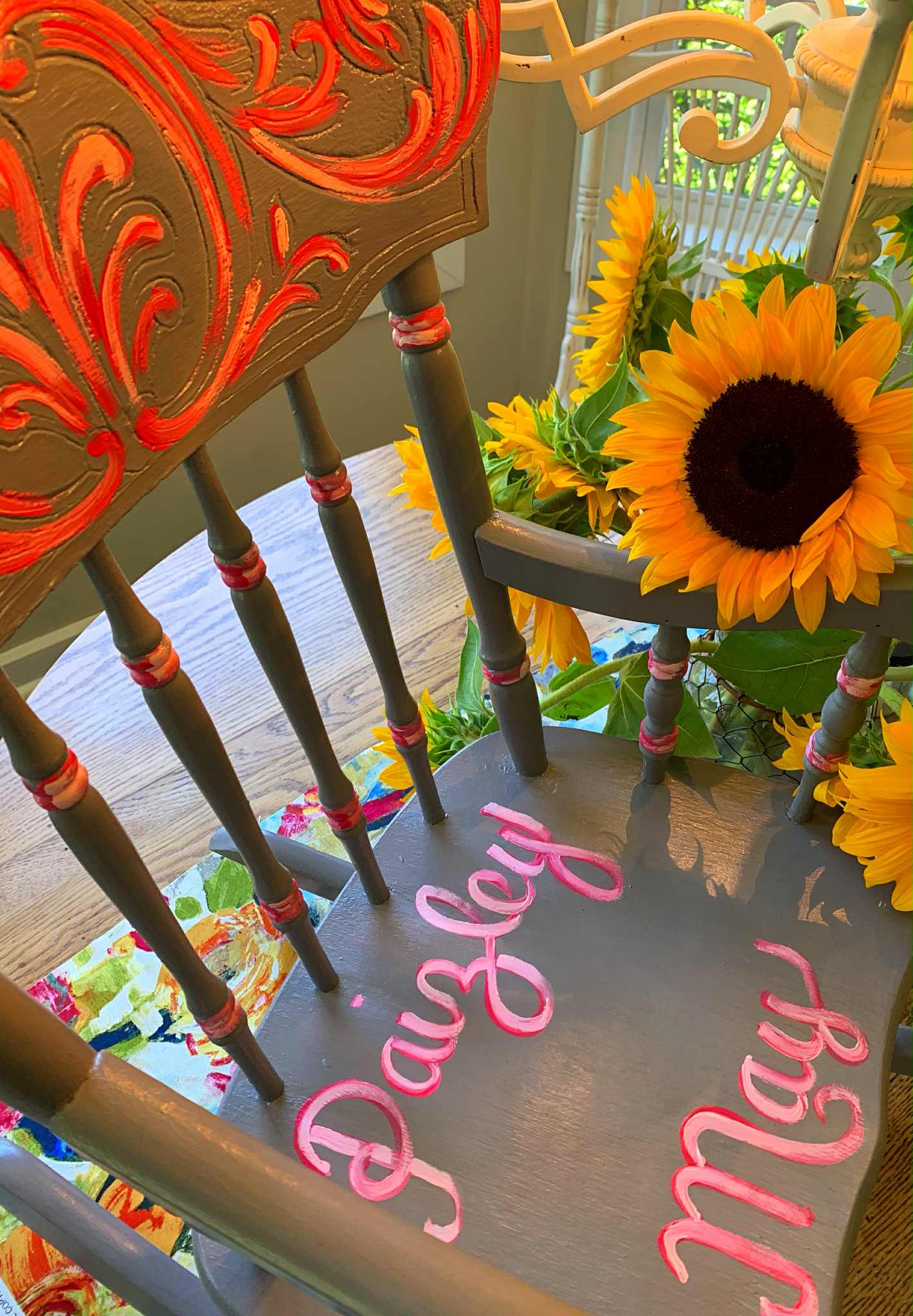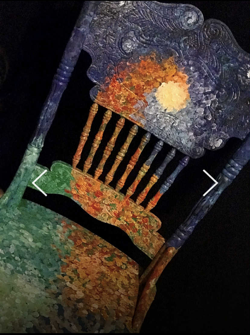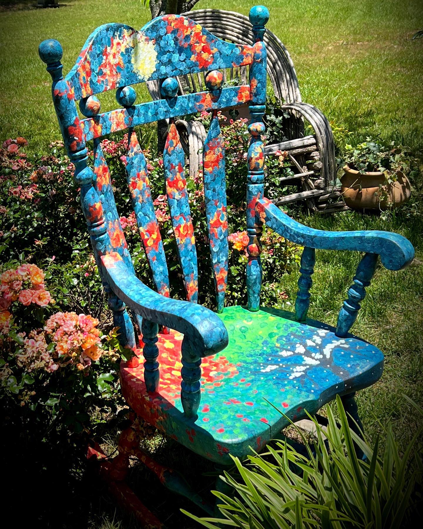 These hand-painted chairs and rockers are created by commission. Each one has been designed out from the heart, just for you.
