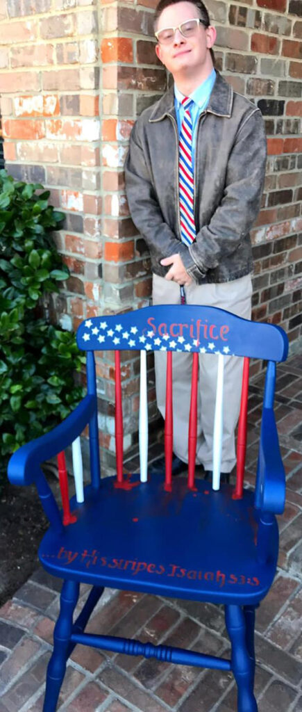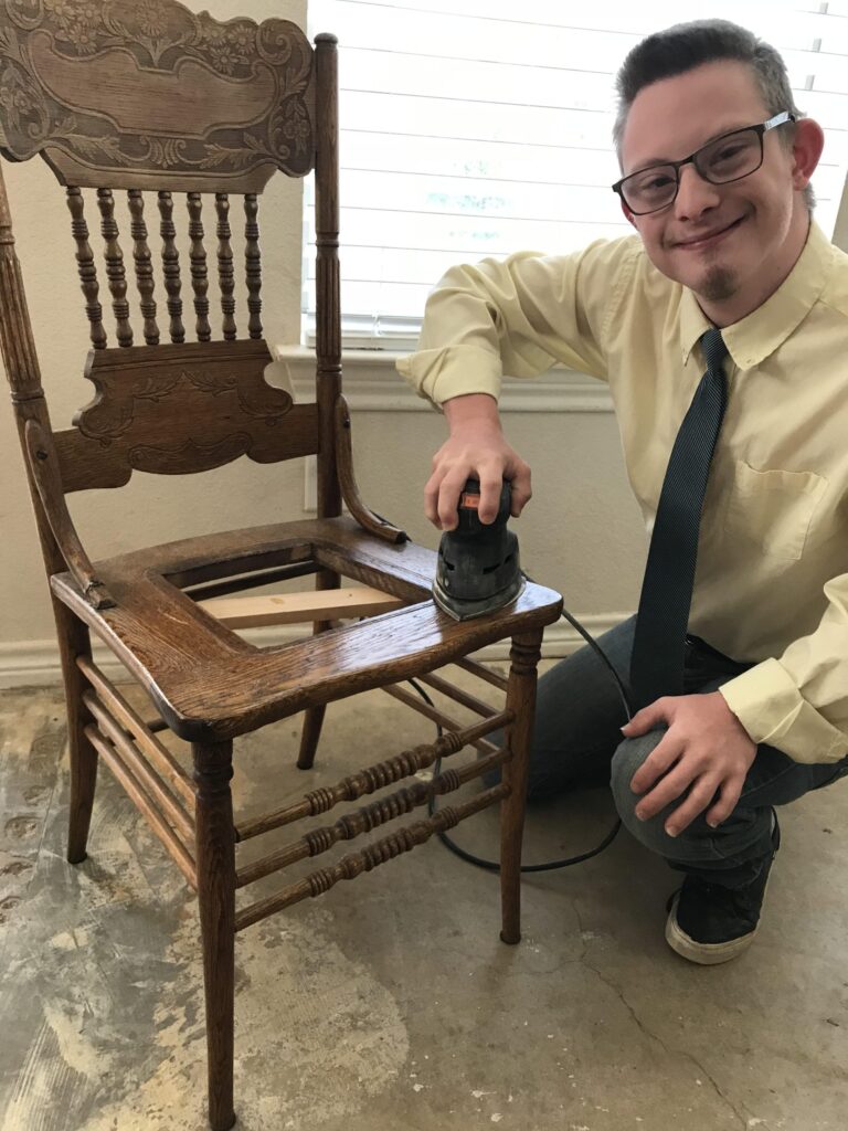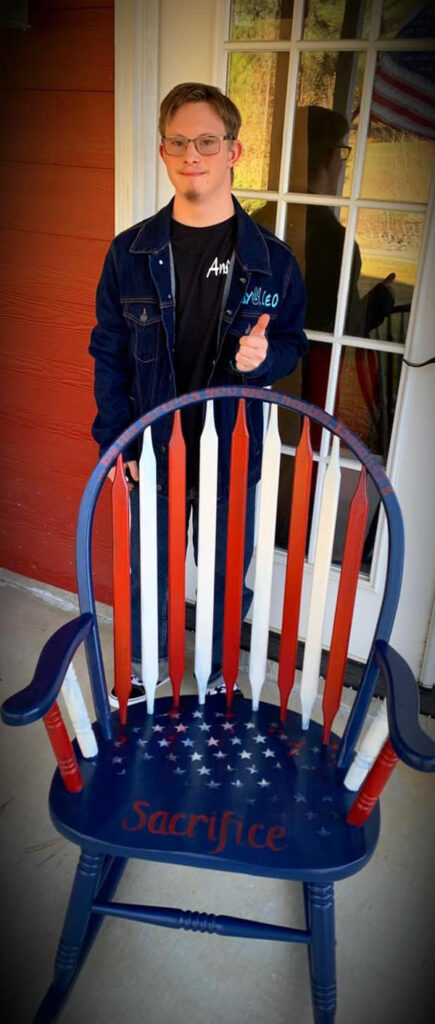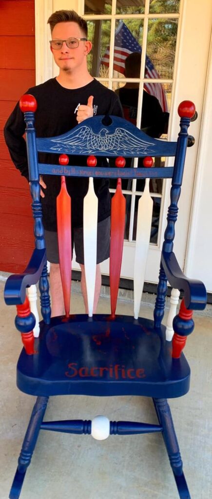 After high school, I handed Andy a paintbrush and a small rocking chair from our garage. As a lifelong artist, I saw his creative spark and wanted to nurture it. With Bill teaching him to sand and me teaching him to paint, Andy’s art business was born.
